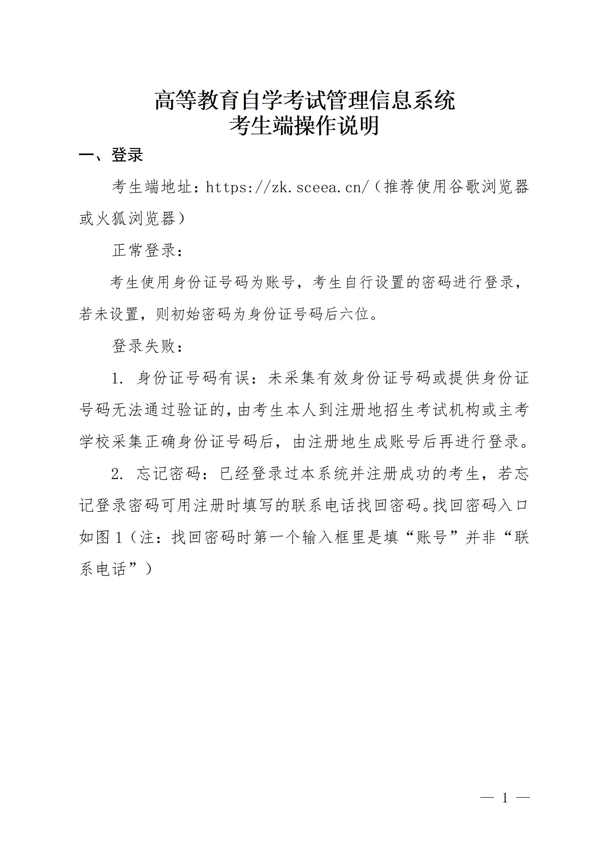 四川省高等教育自学考试管理信息系统考生端操作说明